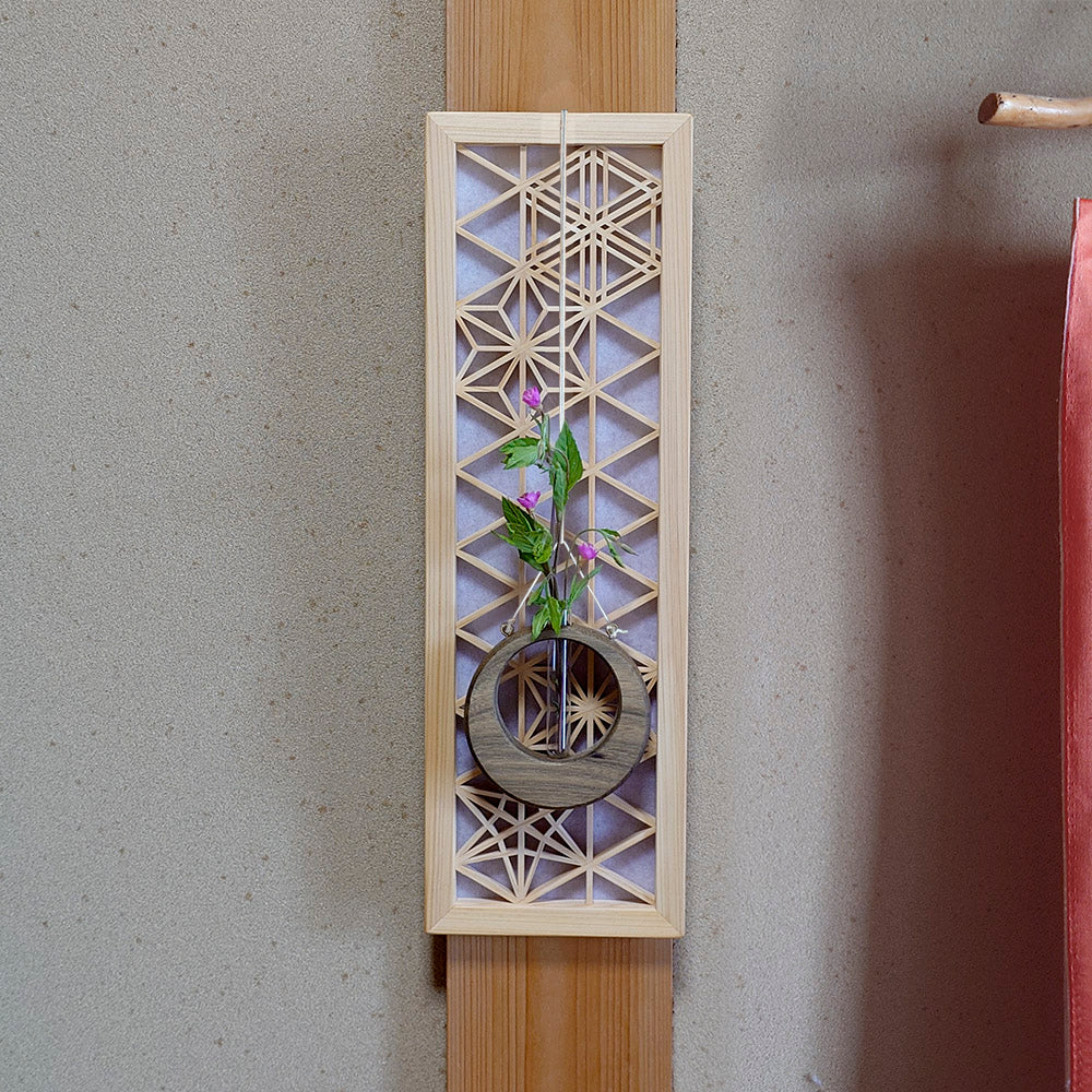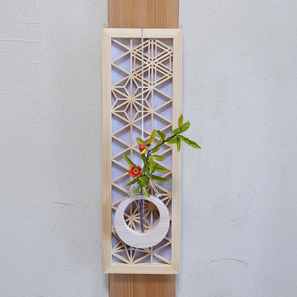 Contenu de l'ensemble : panneau d'art Kumiko... 1 pièce, pieds... 2 pièces, vase à fleurs... 1 pièce, tube en verre... 1 pièce, ficelle de chanvre, ficelle de coton