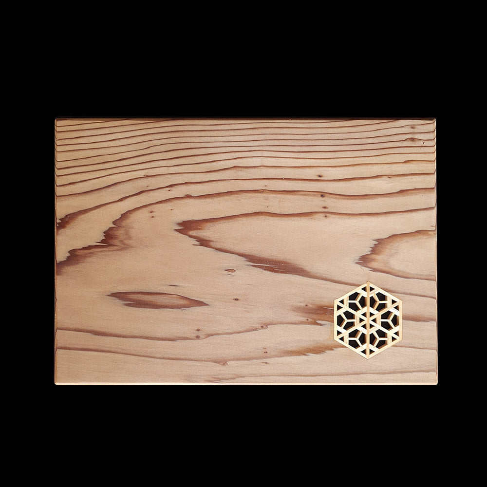 Les œuvres combinant ces deux techniques sont rares. C'est le seul Hamaguriba en cèdre que nous proposons actuellement en boutique.