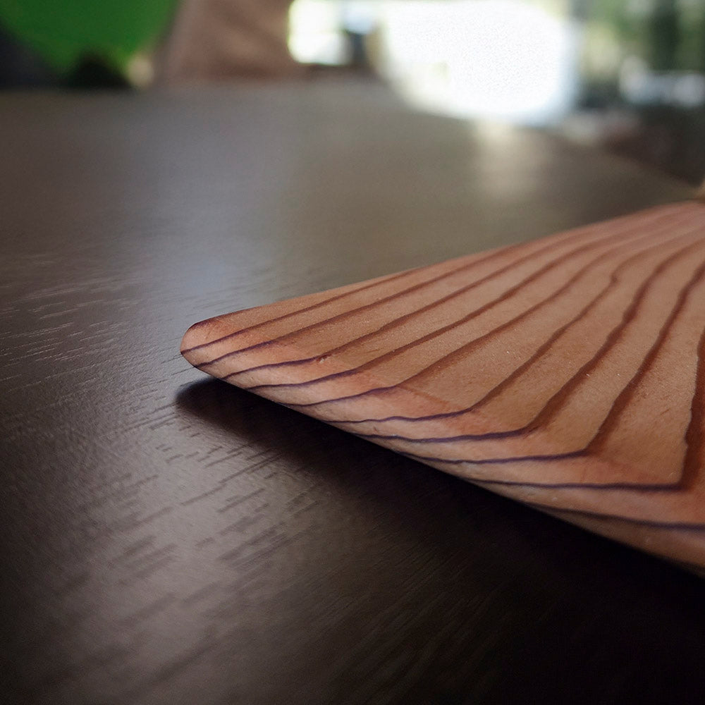Cette planche mince est fabriquée en cèdre massif et présente un grain et des nœuds naturels, vous permettant de profiter d'un motif expressif et unique en son genre.