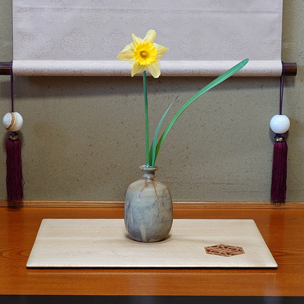 En règle générale, lors de la cérémonie du thé, lorsqu'on place un vase autre qu'un panier sur un sol en tatami, une fine planche est placée sous le vase.