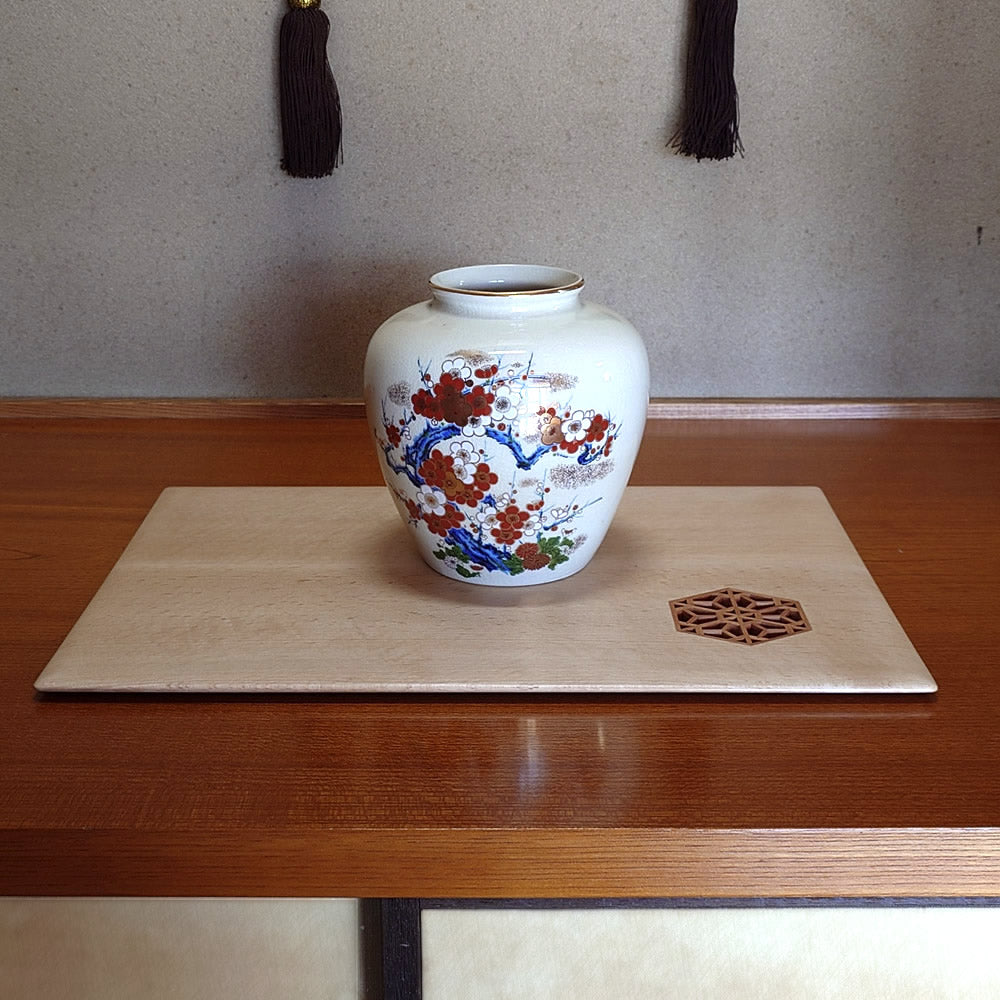 Nous avons accordé une attention particulière au type de bois utilisé pour fabriquer cette planche, afin qu'elle puisse être largement utilisée non seulement comme planche de cérémonie du thé, mais également comme planche pour exposer des objets saisonniers.