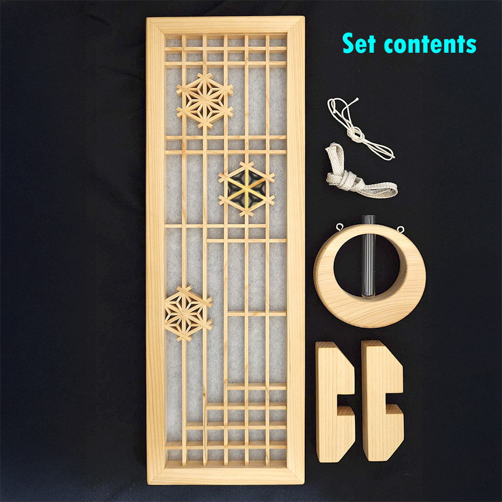 Contenu de l'ensemble : panneau d'art Kumiko... 1 pièce, pieds... 2 pièces, vase à fleurs... 1 pièce, tube en verre... 1 pièce, ficelle de chanvre, ficelle de coton
