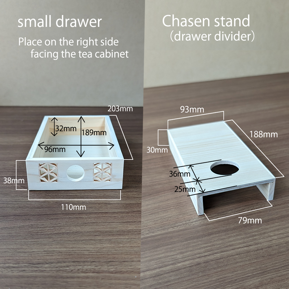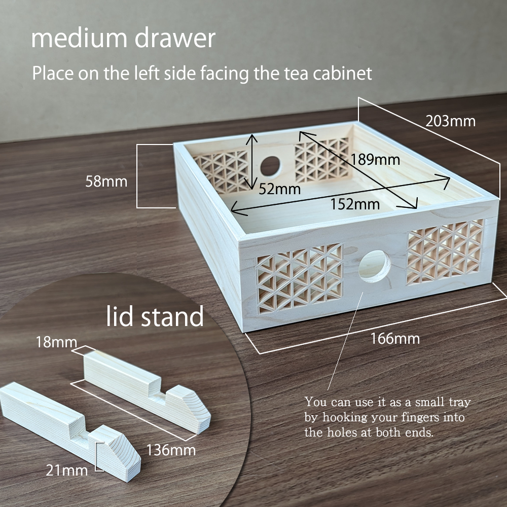 Le couvercle et les tiroirs sont décorés avec l'artisanat Kumiko, ce qui lui donne une finition à la fois magnifique et élégante.