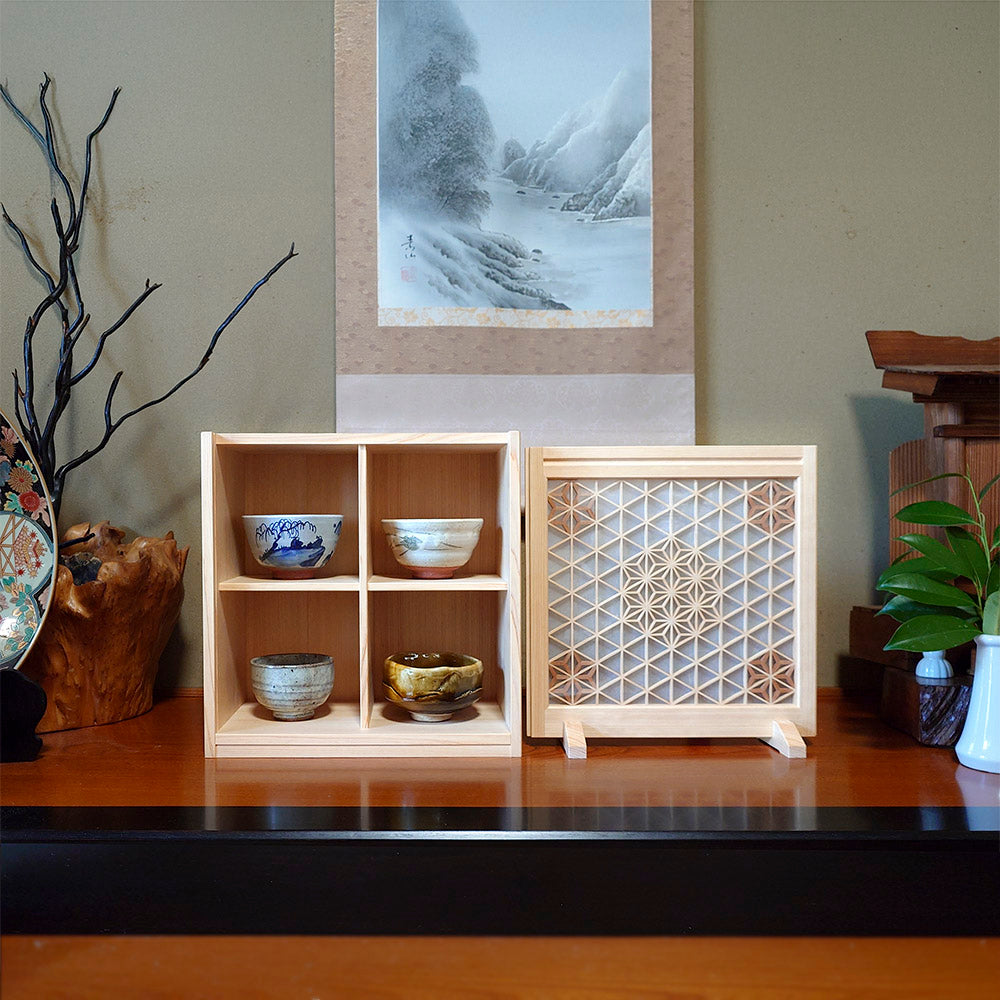 Présentoir de bols à matcha en kumiko *Hexagone*