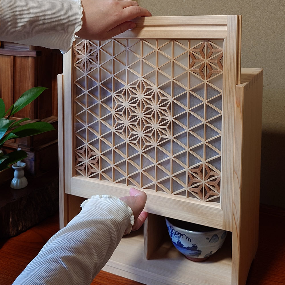 La surface du couvercle est en acrylique transparent pour éviter la saleté comme la poussière et protéger le kumiko.