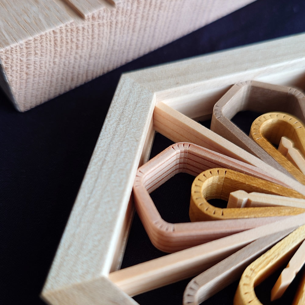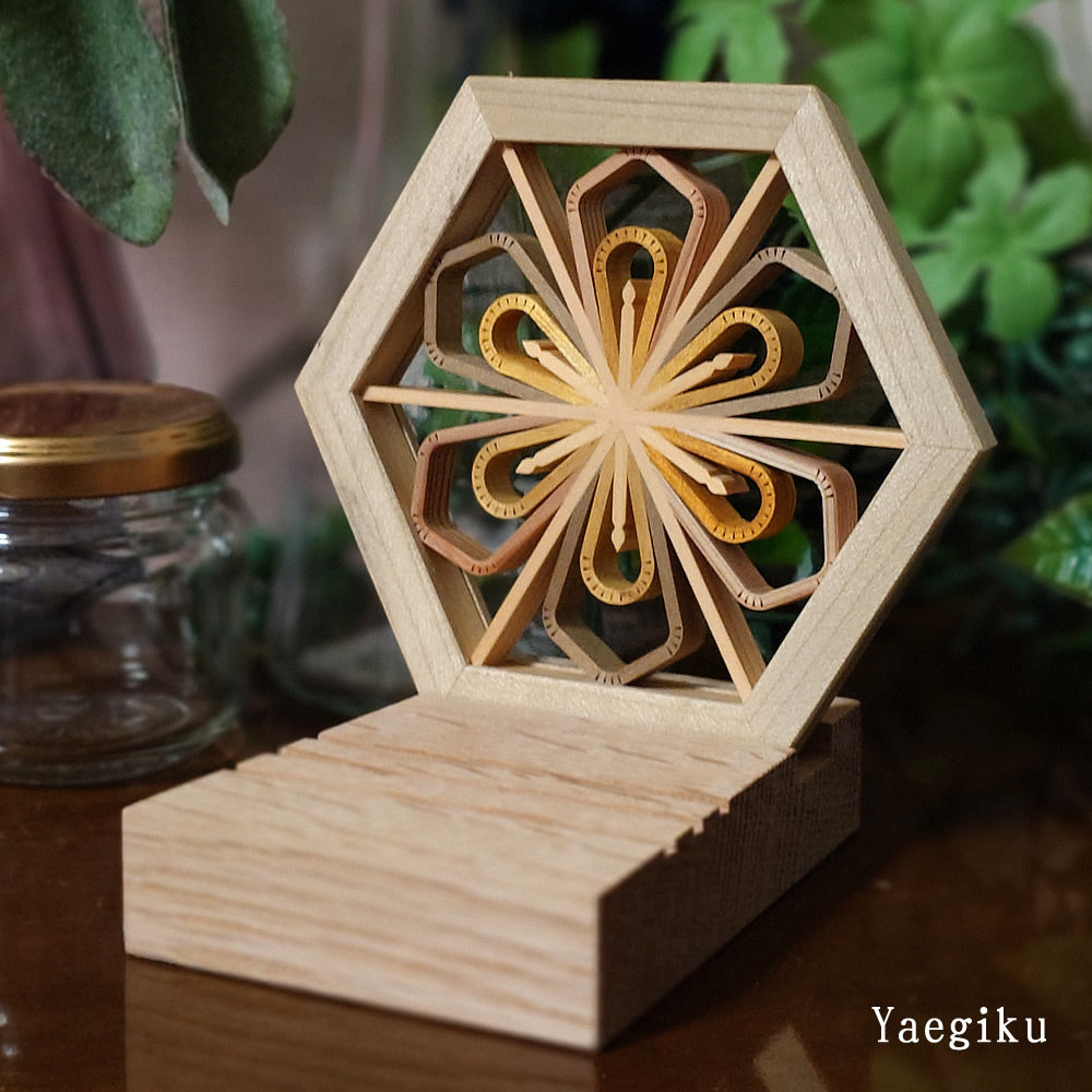 This smartphone stand is decorated with the traditional Japanese craft of Kumiko. Of the more than 200 different Kumiko patterns, we selected some that are relatively intricate and beautiful.
